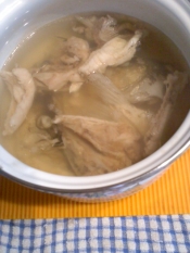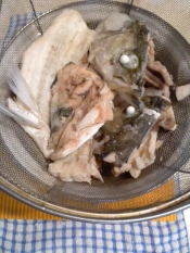 スズキのあら汁で夏野菜スープ さんたの思い出し笑い